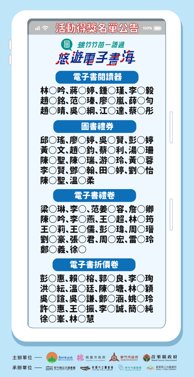 桃竹竹苗一證通悠遊電子書海活動抽獎結果公告